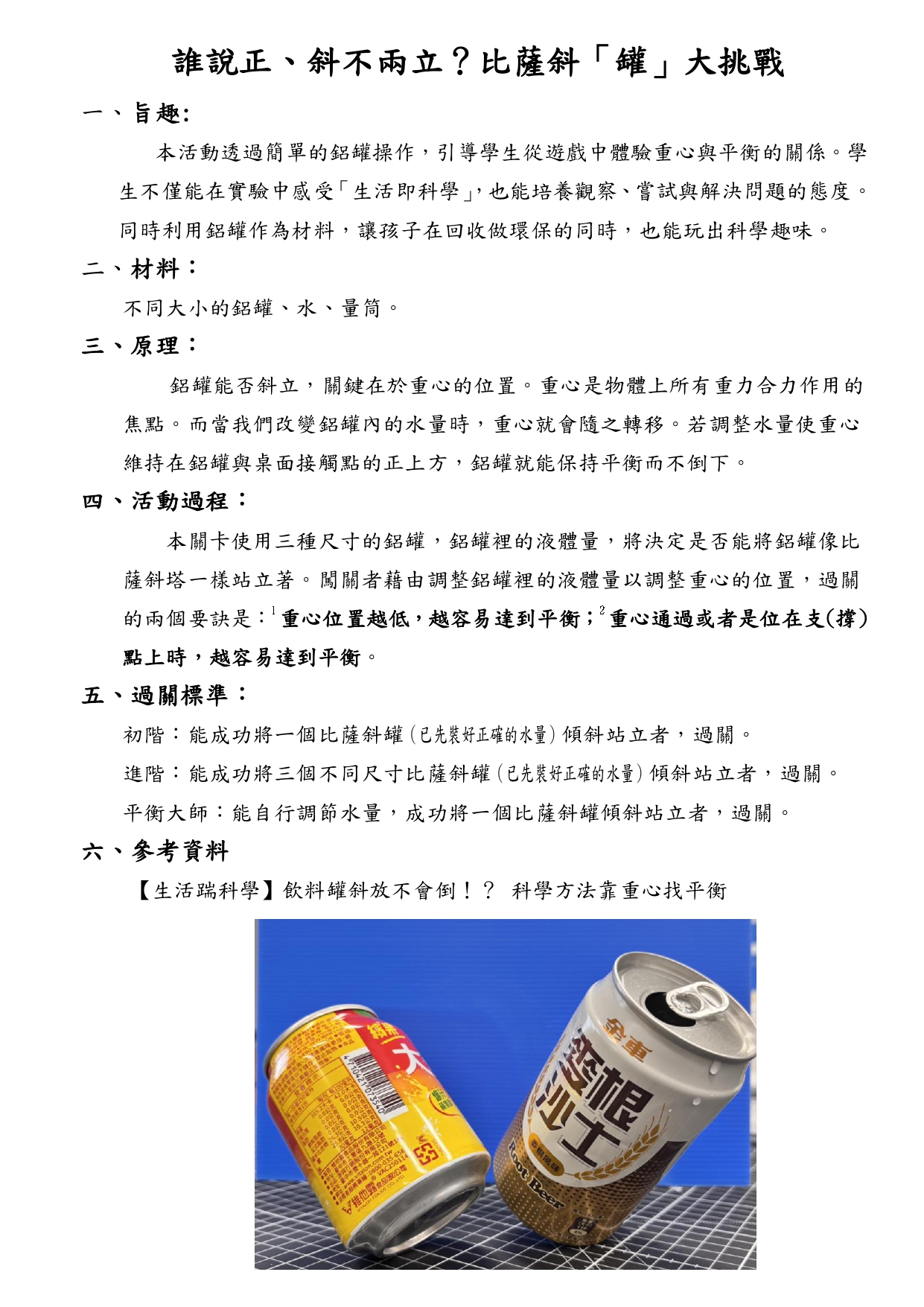 | 鼓山區 | 市立中山國小 | 物理 | 誰說正、斜不兩立?比薩斜「罐」大挑戰 |